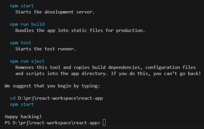6. 명령어를 입력해서 리액트프로젝트를 생성