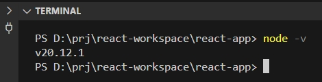 5. VsCode에서 터미널 창을 열고 NodeJS 설치확인