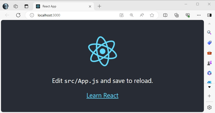 브라우저를 통해서 localhost:3000번 서버로 접속해 보면 리액트 첫 화면이 출력됩니다.