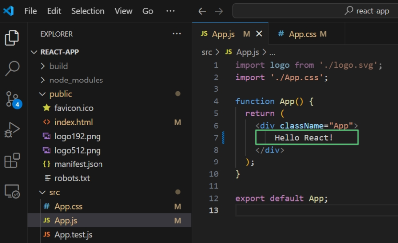 8. 기존샘플내용을 제거하고 심플하게 리액트를 시작해 봅시다.