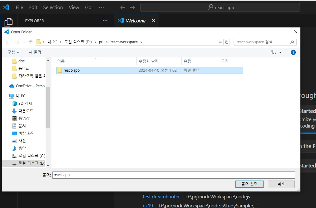 3. 리액트프로젝트 생성할 디렉터리를 준비합니다.