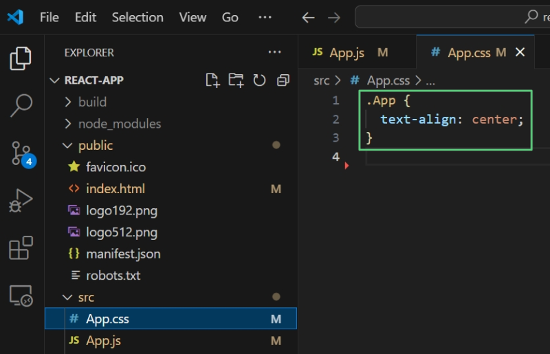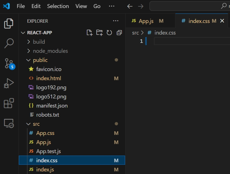 App.js, App.css, index.css 의 기존 내용들을 제거합니다.