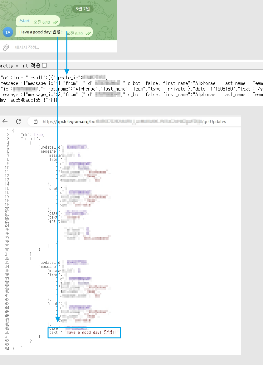 https://api.telegram.org/bot{자신의 API키}/getUpdates