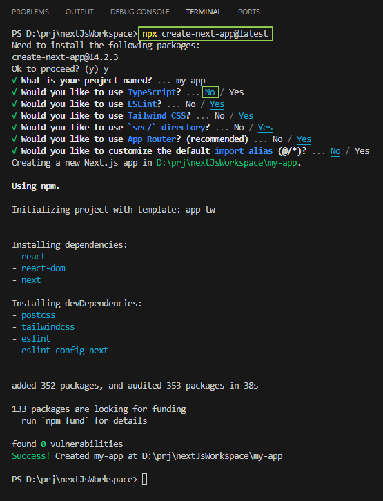 - import alias (@/*)?방식은 매우 편리하지만 일단은 기본에 충실하기 위해서 No를 선택했습니다.