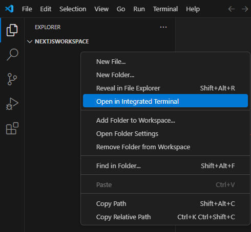 터미널을 사용하여 디렉터리로 이동하는 대신, 프로젝트를 열고 화살표가 아래를 가리키도록 확장한 후 해당 위치에서 우클릭으로 터미널을 열면 바로 해당 디렉터리에서 작업을 시작할 수 있어 편리합니다.