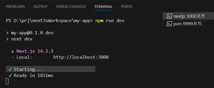 또한, Node.js는 3000번 포트로 실행되었습니다.