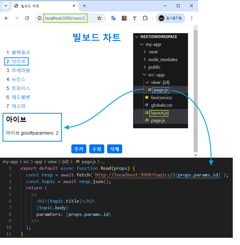 <h1><Link href="/view/1">빌보드 차트</Link></h1>