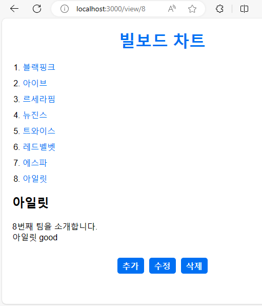 주의: 글을 수정 후 즉시 갱신된 모습을 확인하시려면 {cache:'no-store'} 캐시를 사용하지 않도록 설정해야 합니다.