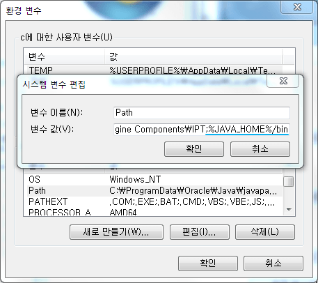 Path에 추가할때는 `%JAVA_HOME%\bin`와 같이 추가할 수 있습니다.