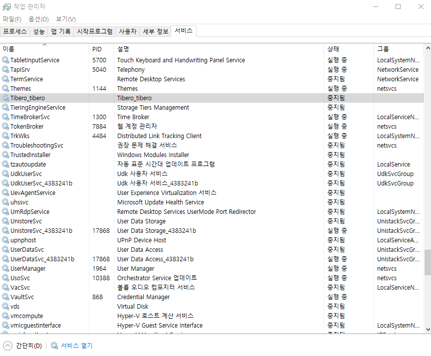 - ✅ 이제 서비스 창에서 Tibero_tibero 서비스가 보일 거예요